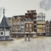Molenstraat, Uilenburg, getekend en geschilderd met rietpen en penseel in Oost-Indische en meerdere kleuren inkt op linnen doek 30x40 cm.